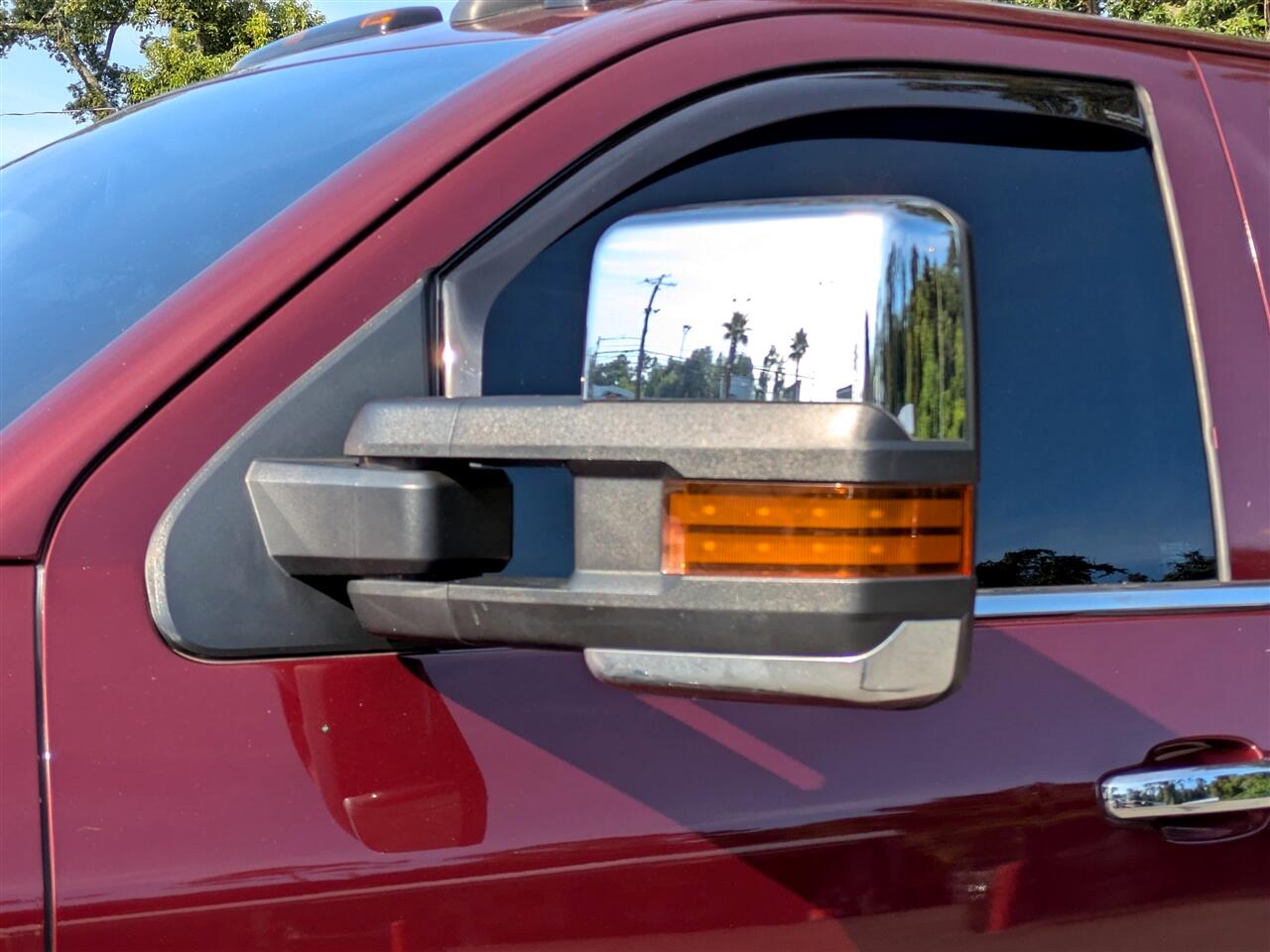 MIRRORS CHROME OUTSIDE HEATED POWER-ADJUSTABLE VERTICAL TRAILERING MEMORY-EQUIPPED UPPER GLASS POWER-FOLDING AND MANUAL EXTENDING; Includes integrated turn signal indicators consisting of 51 square inch flat mirror surface positioned over a 24.5 square inch convex mirror surface with a common head and lower convex spotter glass (convex glass is not heated and not power-adjustable) and addition of auxiliary cargo lamp for backing up (helps to see trailer when backing up with a trailer) and amber auxiliary clearance lamp